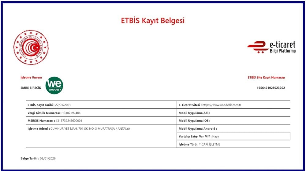 Bizimde hikayemiz aynen bir makinenin çarklarının dişlileri, bir romanın karakterleri ile birbirine olan uyumu gibidir. Farklı düşüncelerden, farklı fikirlerden doğmuş, büyük emek ve zaman harcanmış bir markadır “Woodesk”. Küçücük bir atölyede başladık ağaca şekil vermeye, hep farklıyı hep benzersizi yapmaya çalıştık en önemlisi en çok sevdiğimiz modelleri ürettik ve şu anda Antalya eskisanayide 2000 m2 lik üretim alanımız ve 500 m2 lik showroomumuz ile çok daha rahat ve çok daha fazla üretiyoruz, hem internet satışımızla hemde mağazamızla ürünlerimizi sizlerle buluşturuyoruz..